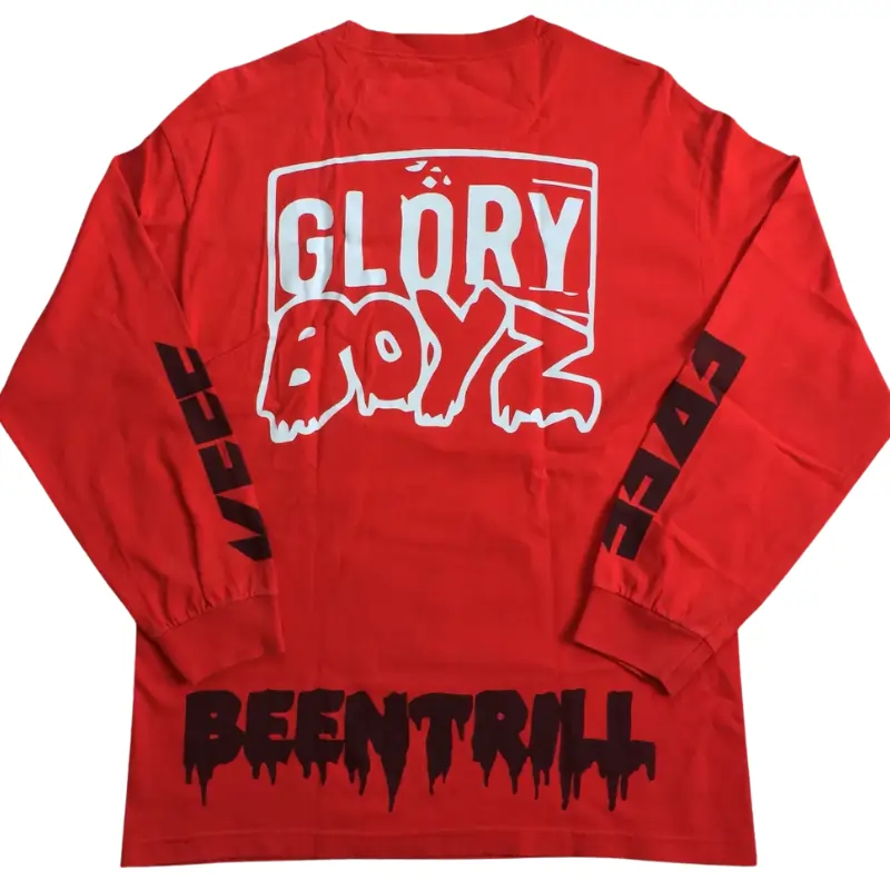 Make noise from the jump with the Been Trill Free Chief Keef Glory Boyz L/S Tee. The “FREE KEEF” punches loud across the front and sleeves, while “GLORY BOYZ” lands heavily on the shoulder and back. Down low, the classic “BEEN TRILL” hit finishes things off with authority.