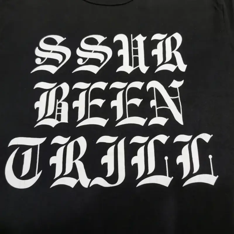 This Black SSUR X Been Trill Short Sleeve T-Shirt merges raw grit with glitch-heavy attitude. Front graphic’s loud, sleeve hits keep it moving, and the relaxed cut gives it that off-duty confidence. We craft it with premium cotton for easy wear, but the look stays sharp. No overthinking—just two bold names clashing in all the right ways. Whether you’re stacking it or wearing it straight up, this tee holds weight without needing to say much.