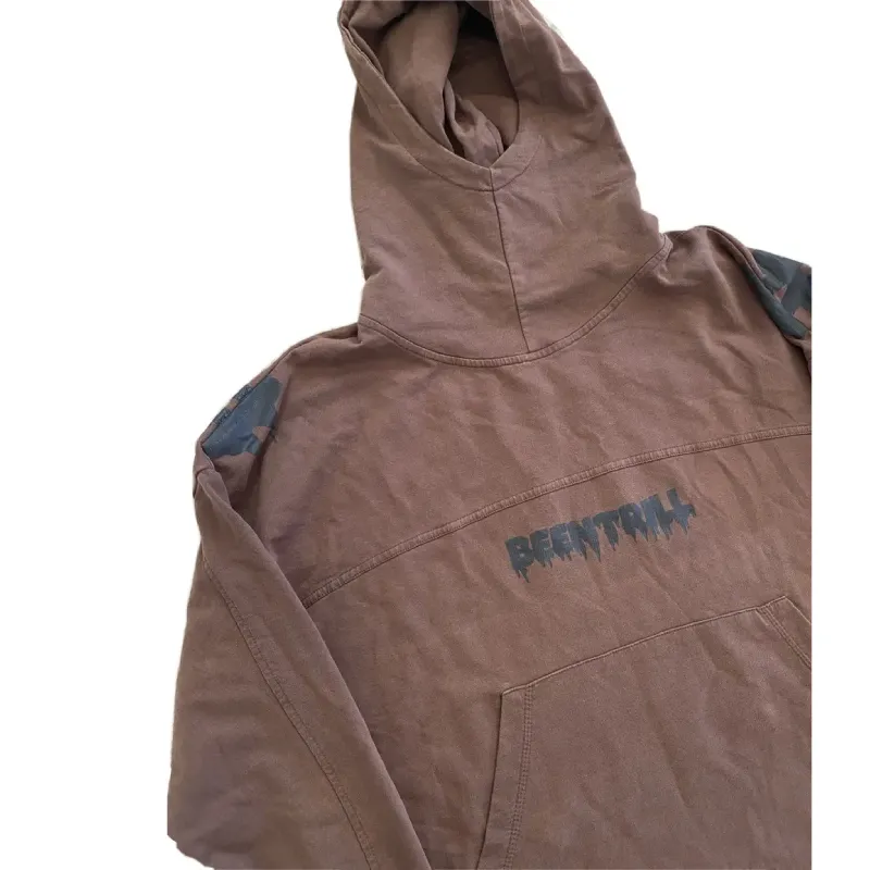 Unlock bold expression with our Brown Been Trill Printed Logo Hoodie. Designed in a brown shade, it features cracked black branding across the chest and unique shoulder drip graphics that give it serious street credit. The front pouch and elastic trim balance form and function with ease.